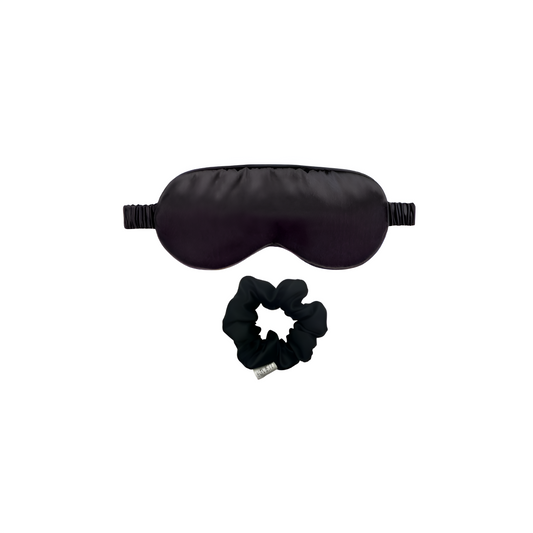 Kivien Silk DUO miego akių kaukė + plaukų gumytė „Blackberry Black”