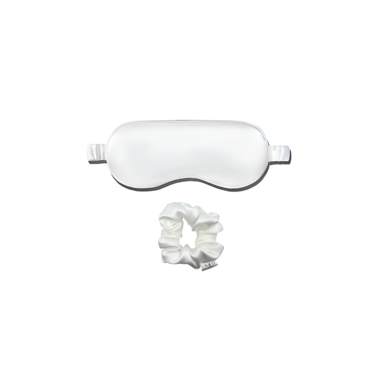 Kivien Silk DUO miego akių kaukė + plaukų gumytė „Coconut White”