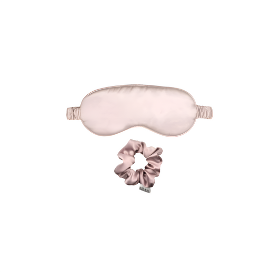 Kivien Silk DUO miego akių kaukė + plaukų gumytė „Lychee Pink”