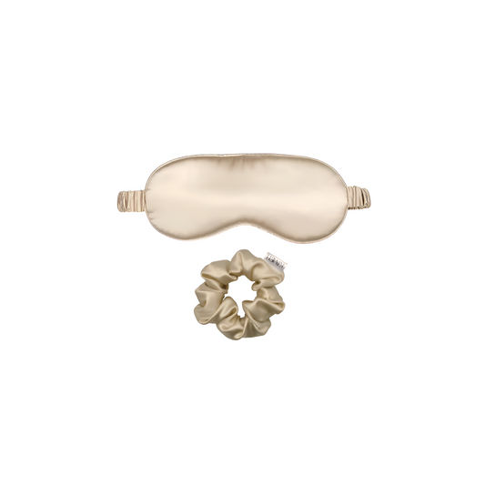 Kivien Silk DUO miego akių kaukė + plaukų gumytė „Golden Peach”