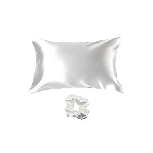 Kivien Silk DUO šilkinis pagalvės užvalkalas + plaukų gumytė „Coconut White”
