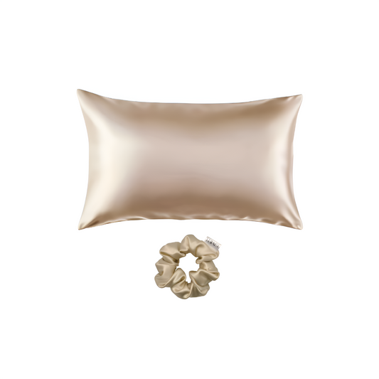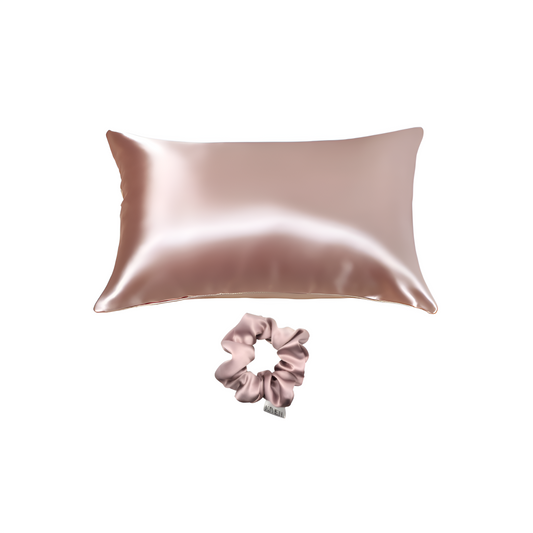 Kivien Silk DUO šilkinis pagalvės užvalkalas + plaukų gumytė „Golden Peach”